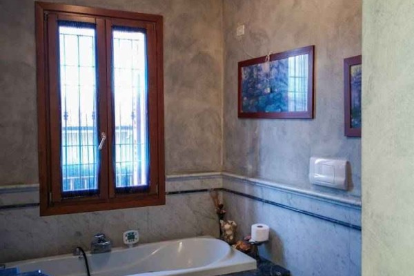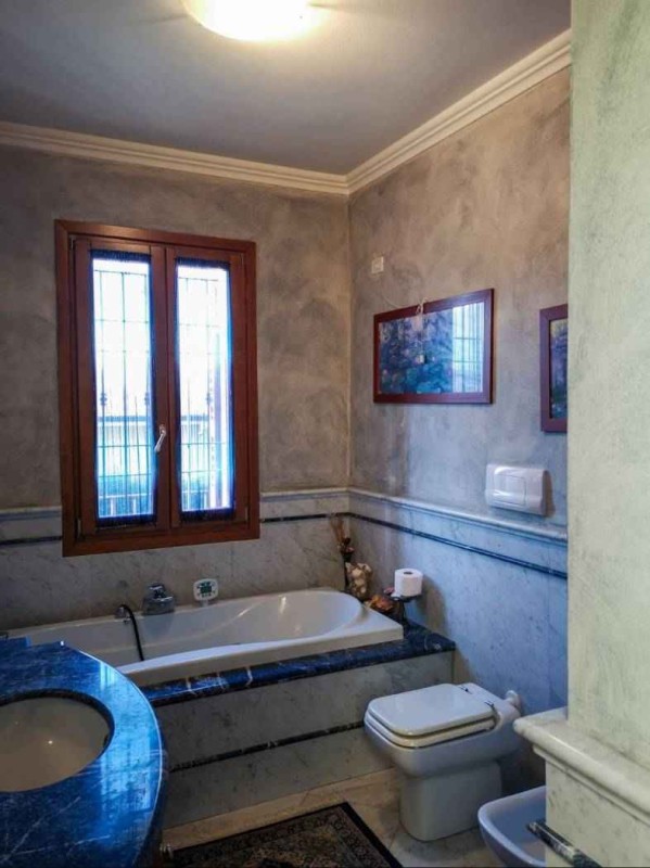 Al primo piano si trovano una camera matrimoniale e una camera da letto servite da un bagno di lusso contornato da pregiato marmo Lapislazzuli e di marmo di Carrara.
