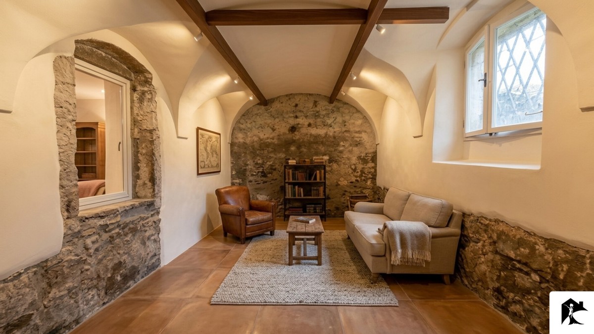 - Stanza extra attualmente accatastata come cantina con volte a vista e accesso ad una seconda cantina seminterrata.