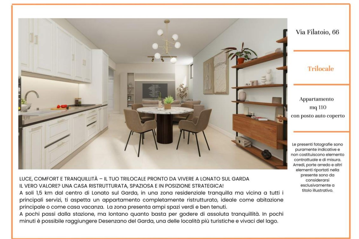 Lonato a pochi passi dal lago proponiamo appartamenti trilocali al piano secondo ( servito da ascensore ) di una nuova palazzina in fase di costruzione. Gli appartamenti hanno ottime metrature interne , ampia sala con cucina a vista , due camere da letto grandi e spaziose oltre a bagno con doccia. Nell'interrato box auto privato , tutti gli immobili hanno terrazze vivibili. Le unità saranno ecosostenibili e realizzate con i migliori materiali disponibili sul mercato , le unità saranno completamente elettriche. Prezzi € 290. 000. per maggiori info chiamare in ufficio 030 675897 -