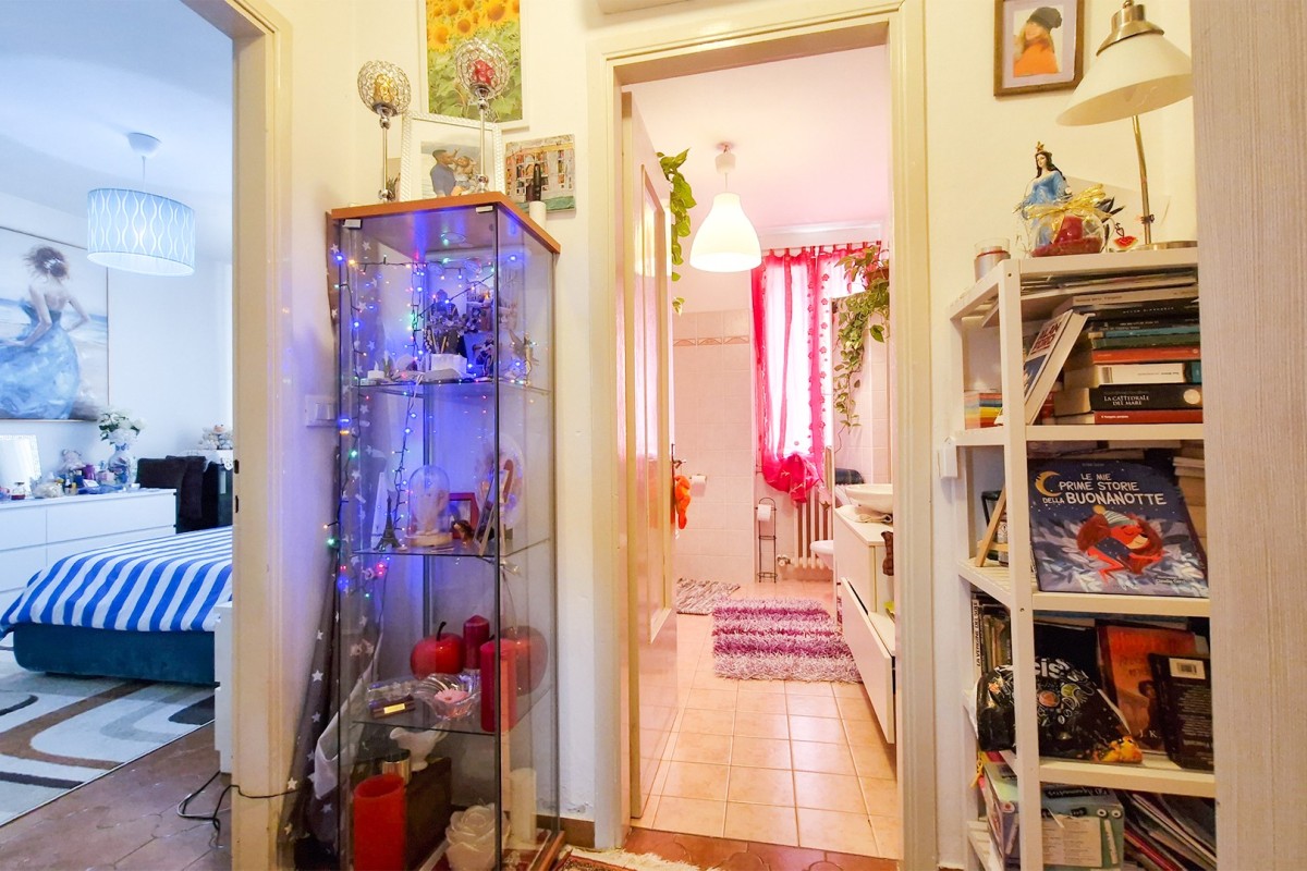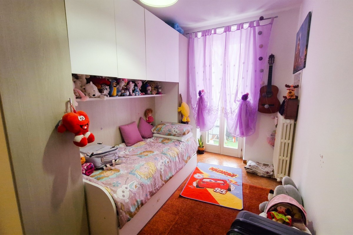 Un piccolo disimpegno conduce alla zona notte, composta da una spaziosa camera matrimoniale e da una seconda camera singola, arricchita da un grazioso balconcino esterno. Completa la soluzione un bagno finestrato, moderno e funzionale, con sanitari in perfetto stato e una pratica doccia.